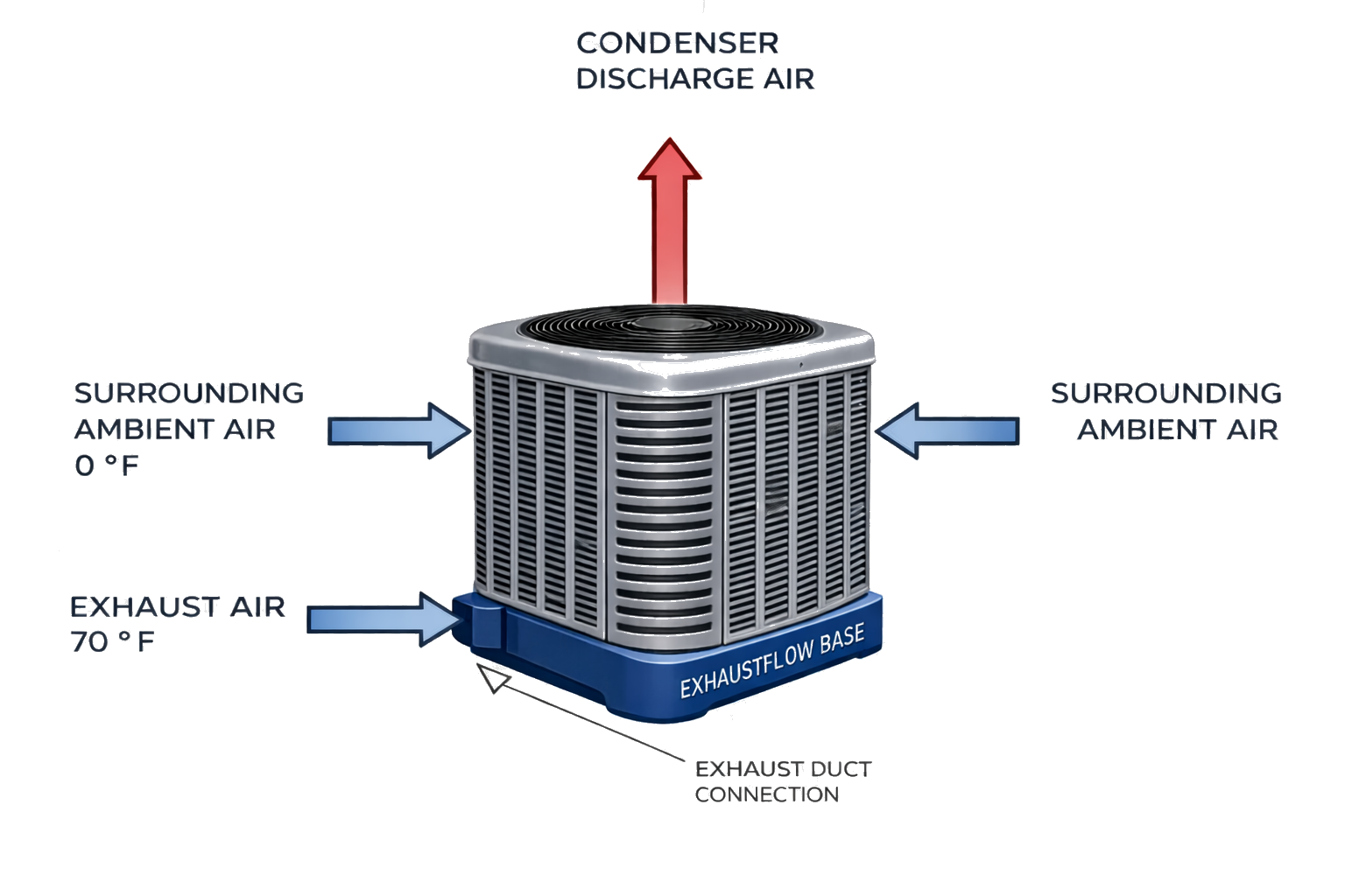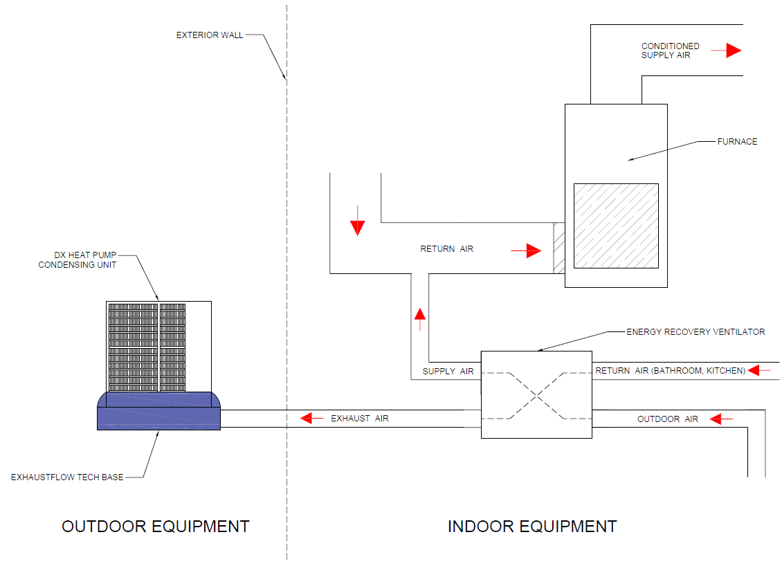 - The Exhaustflow Technologies system utilizes the building/home exhaust air being rejected to enhance HVAC equipment efficiency.